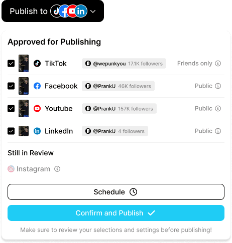 A 1-click publish/schedule post to all your platforms. As simple as that.